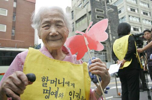 | 건강이 악화되기 전인 2007년 8월 일본대사관 앞 수요시위에 참석한 이순덕 할머니. 이 할머니 등 위안부 피해자 3명이 거주하는 쉼터 ‘우리집’은 교회 도움으로 새 보금자리를 구해 조만간 옮길 예정이다. 세계일보 자료사진 |