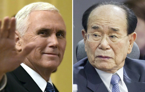 | 마이크 펜스 美 부통령, 김영남 北 상임위원회 위원장. |