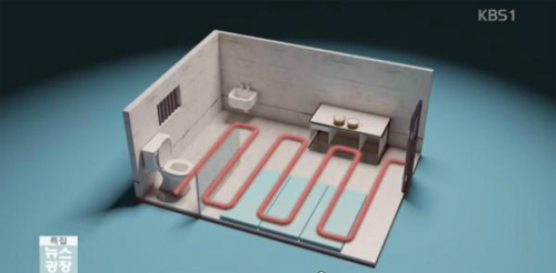 | 이명박 전 대통령이 수용된 서울동부구치소 내 4평가량 넓이의 독방 모습. 박근혜 전 대통령의 서울구치소 독방보다 1평가량 크다. KBS ITV 캡처 |