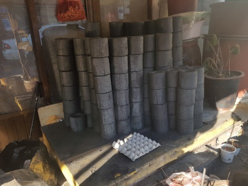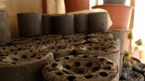 | 서울 노원구 백사마을 거리에 놓인 연탄들. |