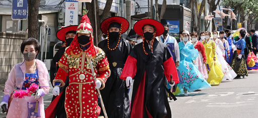 이순신 탄신일 기념 ‘전통 한복 퍼레이드’ 입력 : 2022-04-28 19:08:44 수정 : 2022-04-28 19:08:44 남정탁 기자 구글 네이버 유튜브 충무공 이순신 탄신일인 28일 서울 중구 서애길에서 전통자수문화예술협동조합이 주최한 ‘전통 한복 퍼레이드’에서 참가자들이 다양한 한복을 입고 행진하고 있다. 기자 Copyright ⓒ 세계일보. 무단 전재 및 재배포 금지 세계일보