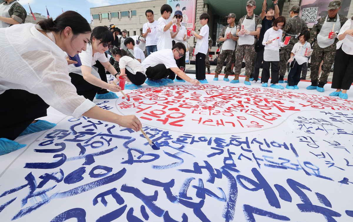이번 행사에는 사전 홍보를 통해 선정된 국민, 장병, 군무원, 군인 가족과 한국캘리그라피디자인협회장 이상현 작가 등 총 77명이 참여해 가로 25미터, 세로 15미터 크기의 대형 캘리그라피 작품을 제작했다.