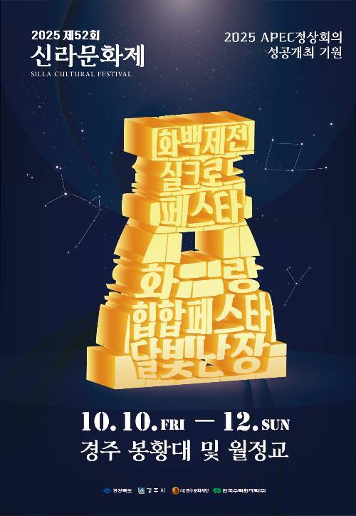 경북 경주가 신라의 찬란한 역사와 시민의 열정, 그리고 세계와의 교류로 한껏 물들 전망이다. 경주시는 10일부터 3일간 월정교·봉황대·쪽샘지구 일원에서 ‘2025 제52회 신라문화제’(포스터)를 개최한다고 2일 밝혔다.