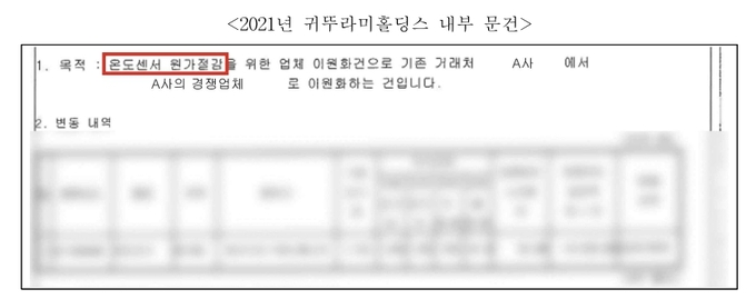 공정위에 따르면 귀뚜라미의 2021년 내부 문건에는 ‘온도센서 원가절감을 위한 업체 이원화건’이라며 ‘A사에서 A사의 경쟁업체로 이원화하는 건’이 목적으로 표기됐다.