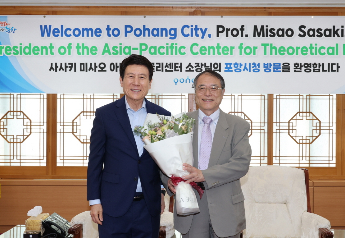 경북 포항시는 이강덕 시장이 27일 시청 대외협력실에서 사사키 미사오(Misao Sasaki) 아시아태평양이론물리센터(이하 APCTP) 신임 소장을 접견하고, 취임을 축하했다고 밝혔다.