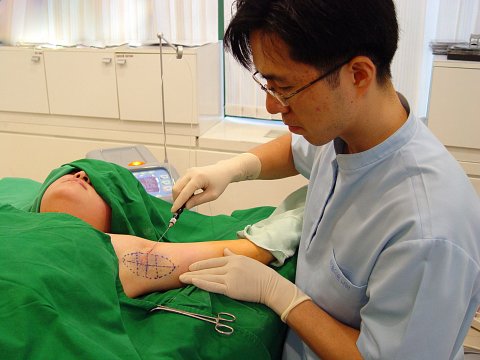 | ◇피부과 전문의가 레이저를 이용해 겨드랑이 액취증 시술을 하고 있다. |