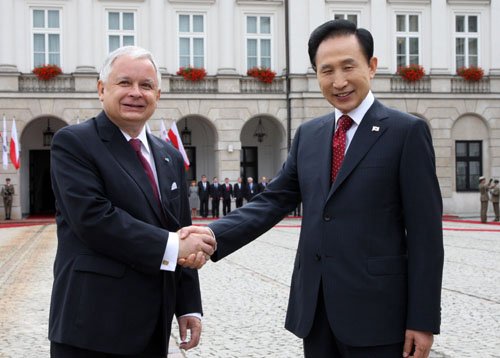 이 대통령은 회담에 앞서 카친스키 대통령에게 금제 거북선 등 3가지 선물을 증정하며 분위기를 조성했다. 지난해 12월 카친스키 폴란드 대통령 내외가 한국을 방문했을 때의 모습을 담은 디지털 액자도 건넸다. 이 대통령은 단독·확대정상회담에선 카친스키 대통령과의 협력강화 의지를 분명히 했다.