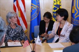 | 회담 중인 전재희 보건복지가족부 장관(우)과 캐슬린 시벨리우스 미국 보건부 장관(좌) <연합뉴스> |