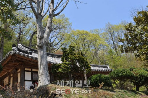 | ◇꽃비가 내린 불일암에는 법정 스님의 뜻을 받들고 있는 덕조 스님의 노력이 곳곳에서 묻어난다. 후박나무 아래 법정 스님의 유골이 묻힌 땅에 보호용 대나무를 설치한 이도 덕조 스님이다. |