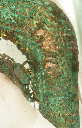 | ◇경주 황남대총 남분에서 출토된 비단벌레 장식 금동 말안장 뒷가리개. 국립경주박물관 제공 |