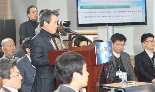 | 지난해 12월27일 정부과천청사에서 권도엽 국토해양부 장관이 국토부 업무보고 계획을 발표하고 있다. 국토해양부 제공 |