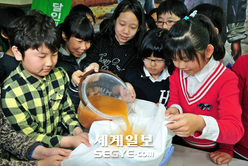‘세계 물의 날’(22일)을 하루 앞둔 21일 서울 성동구 성수동 경수초등학교 강당에서 물의 소중함을 체험하는 뜻깊은 행사가 열렸다. 시민단체인 초록우산 어린이재단이 주관한 이날 행사의 명칭은 ‘흙탕물 정수의 달인’이다. 이 학교 5학년생 전원이 참여해 직접 흙탕물을 정수함으로써 물의 고마움을 느끼도록 하자는 취지다. 재단 관계자는 “물의 날 관련 행사가 많지만 대부분 홍보성 이벤트에 그치고 있어 아이들이 직접 해보자는 의도에서 기획됐다”고 말했다.