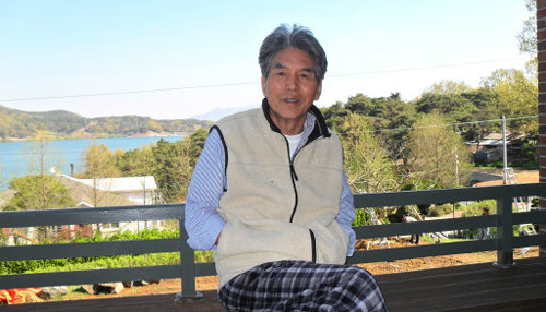 | 소설가 박범신씨는 소설 ‘은교’에 대해 “너무 성적인 측면만 부각됐는데 그렇지 않다. 삶의 유한성, 인간의 존재론적 슬픔에 관한 작품”이라고 말했다. 충남 논산의 자택 2층 베란다에 선 작가 뒤로 푸른 탑정호가 보인다. |