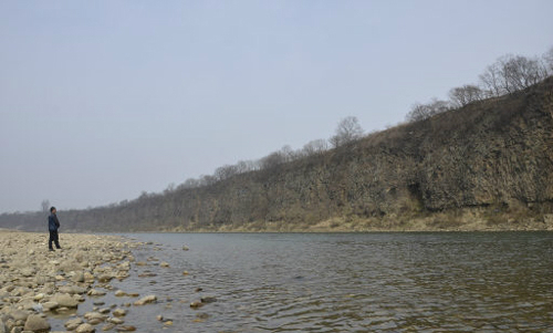 | 단면의 형태가 육각형 내지 삼각형으로 긴 기둥 모양을 이루는 미산면 동이리의 임진강 주상절리로 길이가 1.5㎞나 된다. |