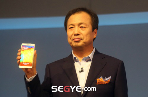 | ▶ 삼성전자 신종균 사장이 갤럭시 노트3를 선보이고 있다. /사진=삼성전자 |