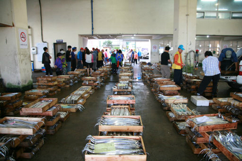 6시가 되자 수협 경매장은 싱싱한 수산물들을 먼저 차지하기 위해 나온 중매인들로 활기를 띠었다. 고등어(25㎏)는 3만원대, 조기(10㎏ 기준)는 10만∼11만원대, 갈치(10㎏ 기준)는 15만∼16만원대에 거래됐다. 경매가 순조롭게 진행되던 7시30분쯤 돌발상황이 발생했다. 15만∼16만원대를 형성하던 갈치 가격이 13만원대 밑으로 떨어지면서 경매가 중단된 것이다. 요즘 같은 시장 상황에서 갈치가 잘 팔리지 않으면 큰 손해를 볼 수 있다고 우려한 중매인들이 구매를 꺼린 탓이다. 이성복 제주수협 중도매인협의회 회장은 “오늘 잡은 수산물은 추자도와 중국 동북부 지역에서 잡아온 것이라 방사능으로부터 안전하다”며 “소비자들이 지나치게 방사능 공포에 사로잡혀 있는 것 같다”고 아쉬워했다. 그는 “최근 수산업 종사자들이 인건비도 못 건질 정도로 크게 어렵다”고 털어놨다.