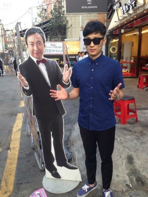 가수 프라이머리가 개그맨 박명수 등신대와 찍은 사진을 공개했다.