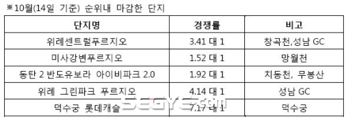 이런 가운데 순위내 마감한 단지들은 대부분 하천 등 물과 인접해 있는 등 자연경관이 뛰어난 단지들인 것으로 조사됐다.