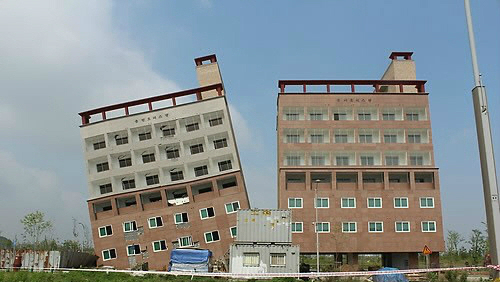 신축중인 건물이 기울어져 붕괴가 우려되는 일이 발생해 파문이 확산되고 있다.