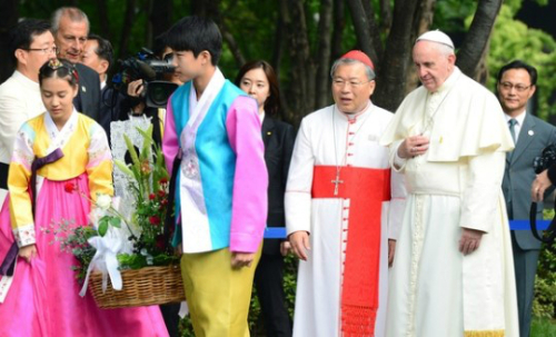 | ▶ 서소문 순교성지에서 화동에게 꽃을 받은 교황 /사진=공동취재단 |