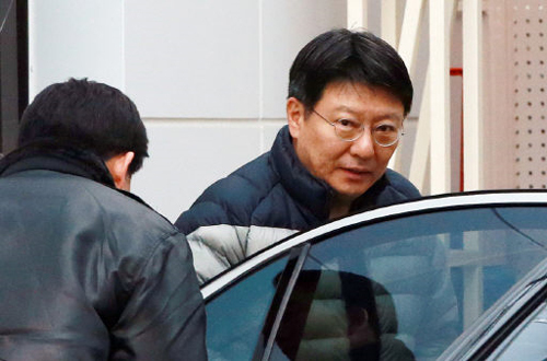 | 검찰이 ‘정윤회 국정개입 의혹’ 문건 수사 결과를 발표한 5일 오후 박지만 EG 회장이 서울 강남구 EG그룹 사무실을 나서 차에 타고 있다. 연합뉴스 |