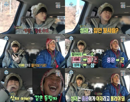 두 사람은 화천에서 열린 산천어축제에 얼음 낚시를 가기 위해 여행길에 올랐고, 가는 길 내내 ‘육씨 집안’ 수다를 펼치며 공감대를 형성했다. 급기야 촌수 얘기 까지 나왔고 궁금증을 참지 못한 육성재는 자신의 아버지에게 전화를 했다.