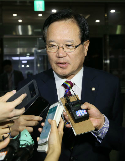 | 정의화 국회의장이 19일 국회로 출근하던 중 취재진에게 국회의원의 대통령 정무특보 겸직 논란에 대한 입장을 질문받고 있다. |