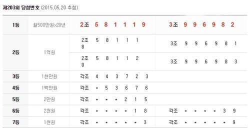 203회 '연금복권당첨번호'는 2조 581119번과 3조 996982번으로 결정됐다고 20일 나눔로또 측이 밝혔다.