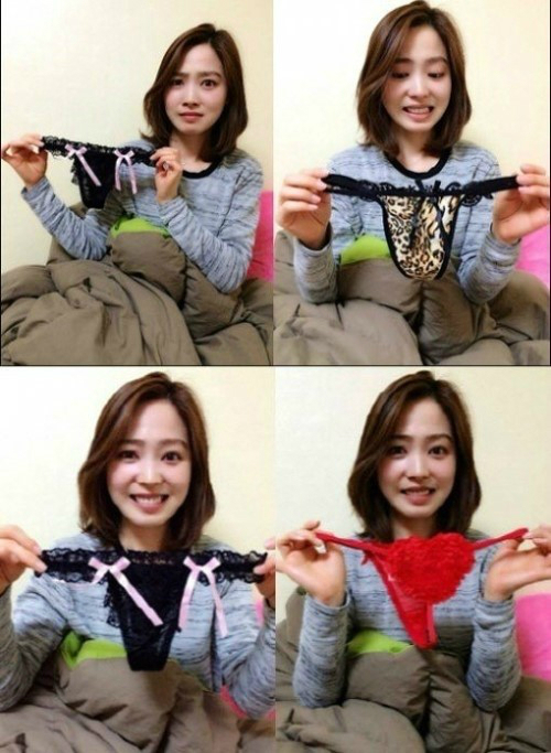 사진 속 차유람은 다양한 종류의 ‘티팬티’를 손에 든 채 어쩔 줄 몰라 하는 표정을 짓고 있다.