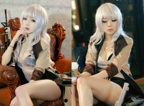 그는 최근 공개된 사진에서 은발과 푸른 눈동자를 연출해 신비스러운 분위기를 자아내고 있다. 더불어 시스루 블라우스 사이에 비치는 아찔한 볼륨감 있는 몸매는 네티즌들의 시선을 사로잡기 충분했다.