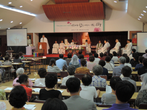 이날 미사는 전례력 상의 기념일을 이틀 앞당겨 ‘성녀 마리아 막달레나 기념일’ 미사로 봉헌됐으며, 특별히 문애현 수녀를 비롯한 봉사자들이 막달레나공동체를 상징하는 ‘밥상’ 등의 실물을 제단 앞에 봉헌해 눈길을 끌었다.