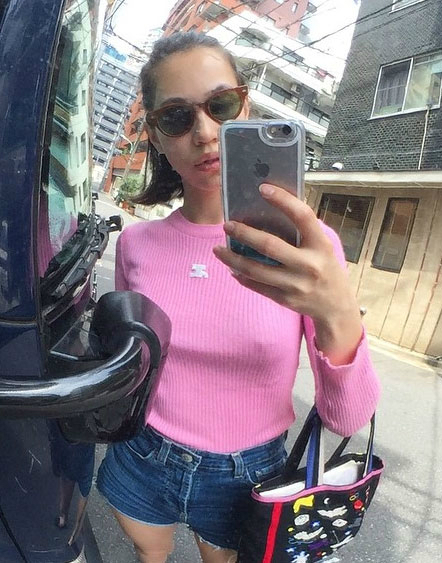 공개된 사진에서 키코는 분홍색 티셔츠 안에 속옷을 입지 않은 듯한 패션을 하고 있어 시선을 사로잡았다.
