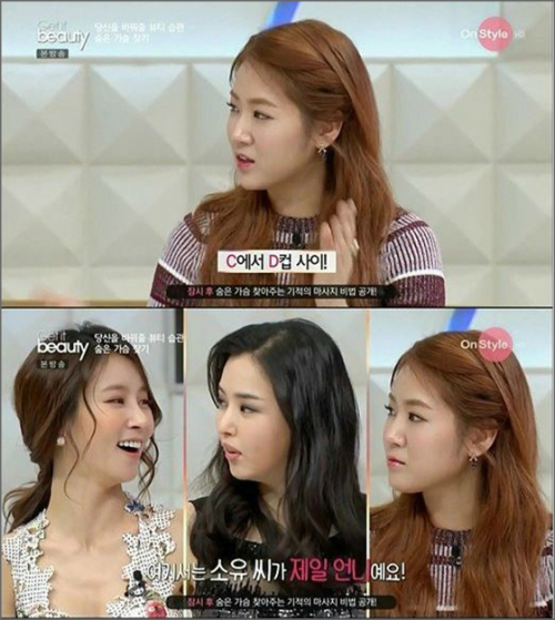 걸그룹 씨스타 멤버 소유는 과거 방송된 On style 예능프로그램 '겟잇뷰티'에서 자신의 가슴사이즈를 공개했다.