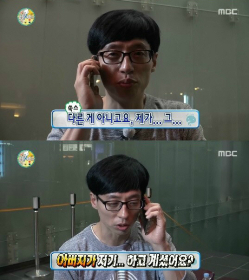 무한도전 유재석이 방송에서 아버지와 통화를 해 눈길을 끌었다.