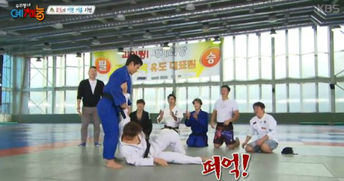 한편 주심은 한판을 선언할 때 손바닥을 앞으로 향하게 해 팔을 머리위로 높이 뻗어 올린다.