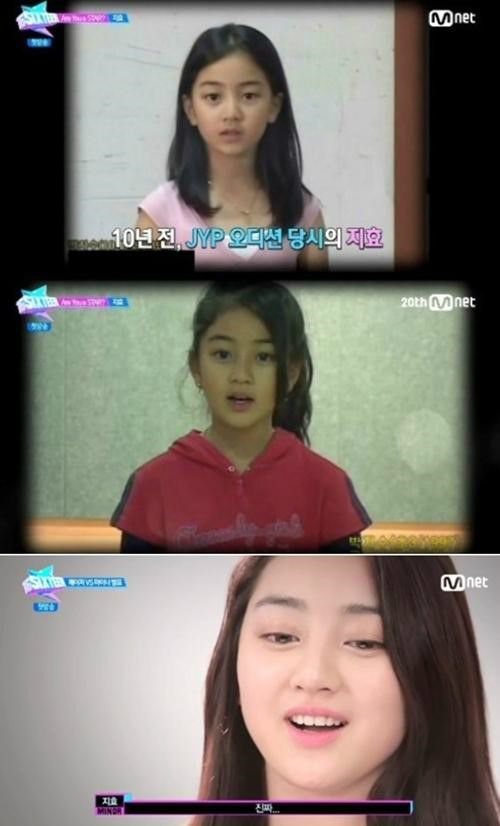 10년 전 지효의 오디션 당시 모습을 보면, 인형 같은 이목구비와 배우 '이나영'을 떠올리게 하는 미모가 보는이들의 눈길을 사로잡는다.