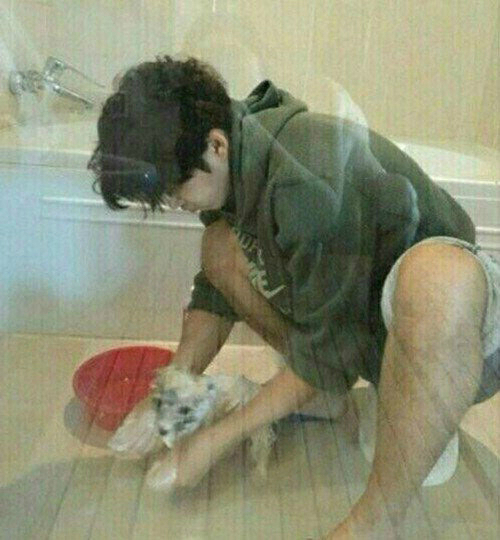 | ['이하늬', 과거 윤계상 강아지 목욕 사진 속 '누드 실루엣' 포착 사진=온라인 커뮤니티] |