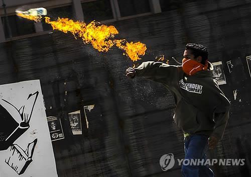 | 베네수엘라 카라카스에서 화염병을 던지는 시위대 |