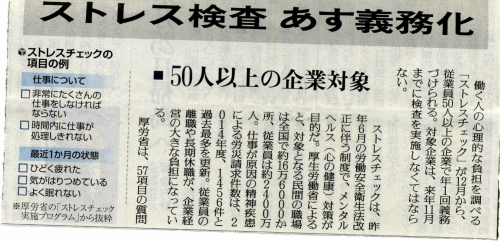 | 일본 정부는 늘어나는 직장인 스트레스에 대응하고자 '스트레스 검사'를 의무화했다. (사진= 신문기사 촬영) |