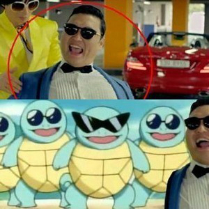공개된 사진 속 싸이는 '강남스타일'을 열창하는 그의 뮤직비디오의 모습과 '포켓몬스터'의 캐릭터 꼬부기가 싸이와 같은 모습을 하고 있어 눈길을 끈다.