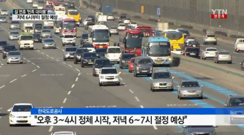 한편, 지난해보다 귀성길은 약 1∼2시간 줄어들고, 귀경길은 20∼40분 늘어날 것으로 예측하고 있으며, 도로공사는 고속도로 정체가 점점 풀려 자정쯤이면 일부 구간의 정체도 모두 해소될 것으로 예상하고 있다.