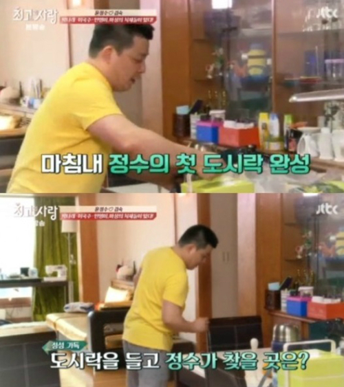 이어 윤정수는 정신없이 나가는 김숙에게 먹을 것을 챙기는가 하면 서둘러 홍삼차를 타서 줬다. 이후 윤정수는 김숙이 출근하자 도시락을 챙기며 주부 모습을 재현 해 웃음을 자아냈다.
