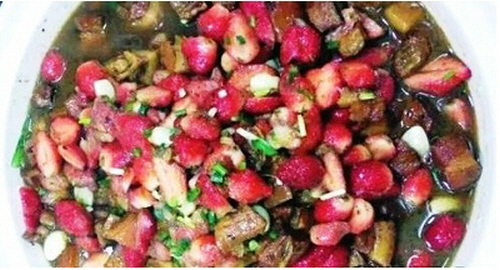 | 딸기를 넣은 고기조림. 학생들에게 가장 인기가 좋은 것으로 알려졌다. |