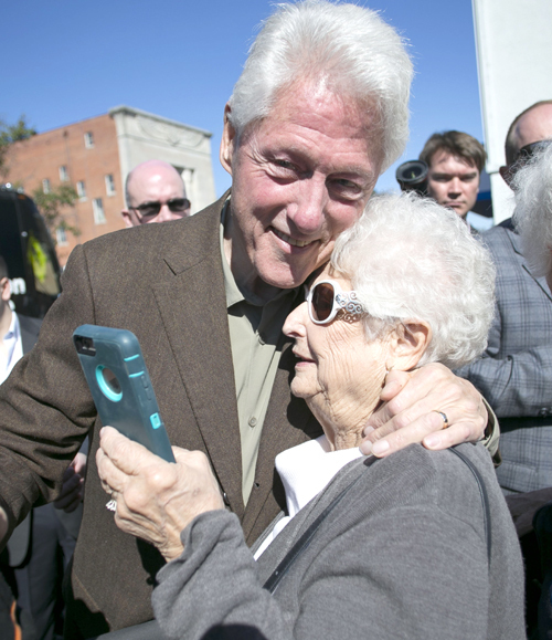 | 25일(현지시간) 미국 노스캐롤라이나주 록키마운트에서 아내인 민주당 힐러리 클린턴 대선후보 지원 유세에 나선 빌 클린턴 전 대통령(왼쪽)이 한 참석자와 사진을 찍고 있다. 노스캐롤라이나=AP연합뉴스 |