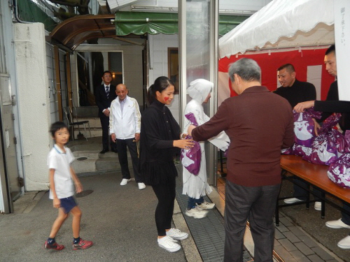 | 지난 사진. 아마구치파 조직원들이 아이들에게 과자를 나눠주고 있다. |