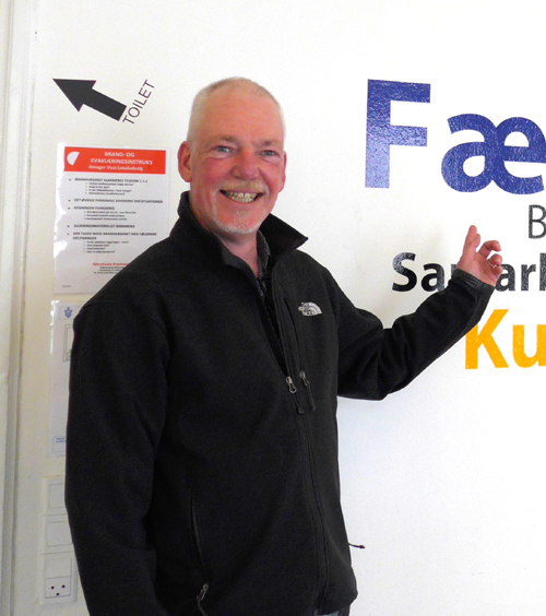 | 외위스텐 레오나르센 코펜하겐시 지역개발 매니저가 덴마크의 도시재생 철학이 쓰여진 순홀름 지역 커뮤니티센터 벽면을 가리키고 있다. |
