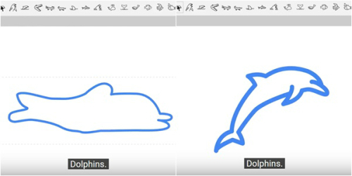 | 구글이 개발한 '오토드로우' 서비스를 통하면 이용자가 돌고래를 대충 스케치(사진 왼쪽)해도 완벽한 그림으로 바꿔준다. 사진=구글 유튜브 영상 캡쳐 |