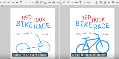 | 구글이 개발한 '오토드로우' 서비스를 통하면 'ㄴ'자와 동그라미 두개로 자전거 형상만 그려 넣어도 디자이너가 작성한 깔끔한 클립 아트로 바뀐다. 사진=구글 유튜브 영상 캡쳐 |