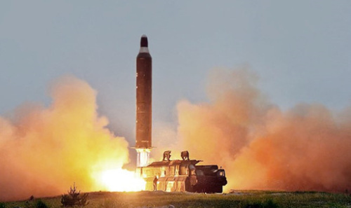 | 지난해 6월 북한 관영 조선중앙통신이 공개한 무수단 미사일의 시험발사 장면. |