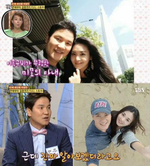 | 이상인(위 사진 왼쪽 이 지난 3일 SBS '자기야-백년손님'에 출연해 아내(〃 〃 오른쪽)와의 결혼 스토리를 얘기하고 있다. 사진=SBS 캡처 |